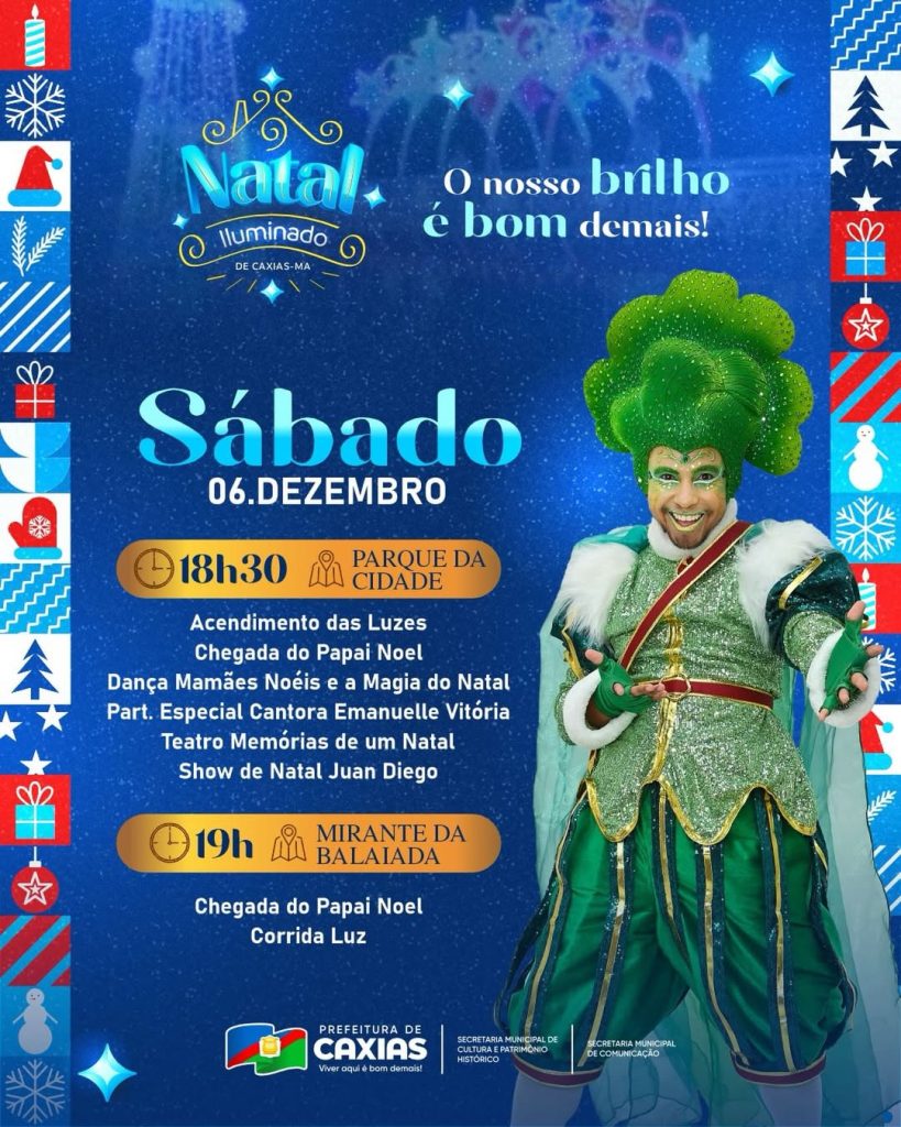 A programação do Natal Iluminado segue encantando moradores e visitantes, e neste sábado (06) a festa continua com atrações especiais no Parque da Cidade e no Mirante da Balaiada. Os dois espaços se preparam para receber famílias inteiras em uma noite marcada por luzes, música e muita emoção.